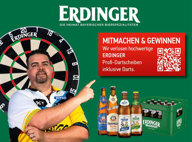 Finkbeiner Getränke und die Erdinger Brauerei verlosen im November hochwertige Erdinger Dart-Scheiben inklusive Darts.