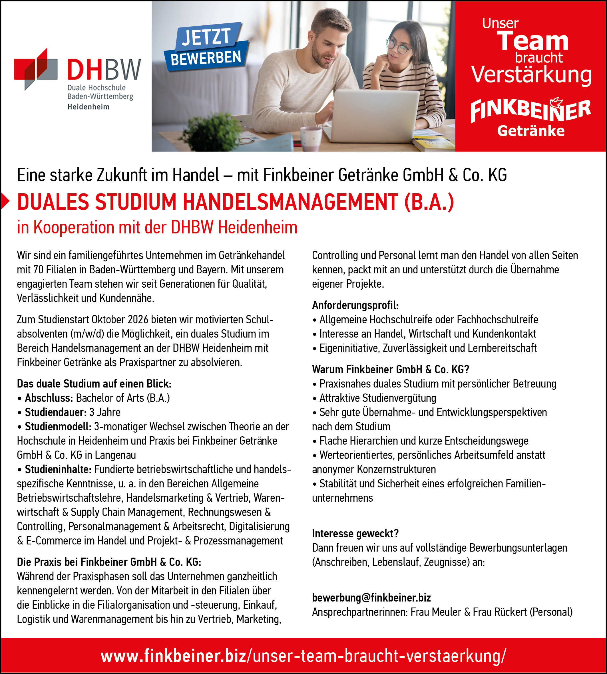 Einfach und unkompliziert bewerben unter: